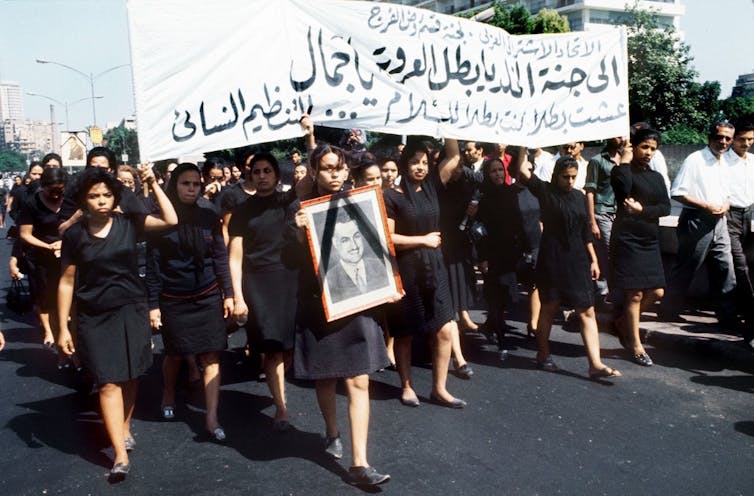 En la época de la independencia, el abandono gradual y generalizado del velo social tradicional se convirtió en algo habitual en las sociedades influidas por el panarabismo de izquierdas –proyecto político que abogaba por la unidad del mundo árabe encarnado por el presidente egipcio Gamal Abdel Nasser–, donde muchas mujeres con la cabeza descubierta ocuparon el espacio público hasta la década de 1980, como muestran numerosos archivos.