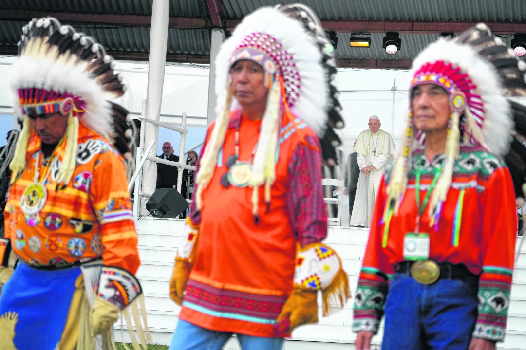 Al ritmo de cantos tradicionales, una inmensa pancarta roja atravesó la multitud reunida en Maskwacis, en el oeste de Canadá, hasta llegar frente al papa Francisco. El lienzo llevaba escritos los nombres de miles de niños. De niños muertos.