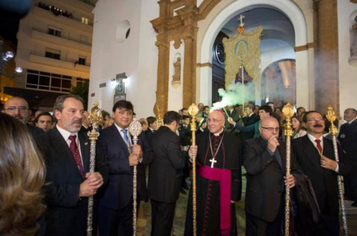 La llegada del simpecado de la Hermandad Matriz de Almonte a la catedral de La Merced ya supuso un primer momento histórico y no menos intenso fue la llegada a la iglesia de la Concepción, tras el que se inició el rezo del rosario de antorchas por las calles de la capital, como si del mismo Rocío se tratara. En la comitiva estaba Juan Ignacio Reales, presidente de la Matriz, así como el obispo de Huelva, José Vilaplana; el alcalde de Huelva, Gabriel Cruz, y los presidentes de las hermandades de Huelva y Emigrantes, Antonio Sánchez de Piña y Fernando Ramírez, respectivamente.