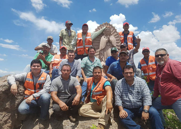 Una imagen de la virgen de Guadalupe de más de media tonelada fue instalada en lo alto del cerro del Peñasquito a la salida sur de Magdalena.