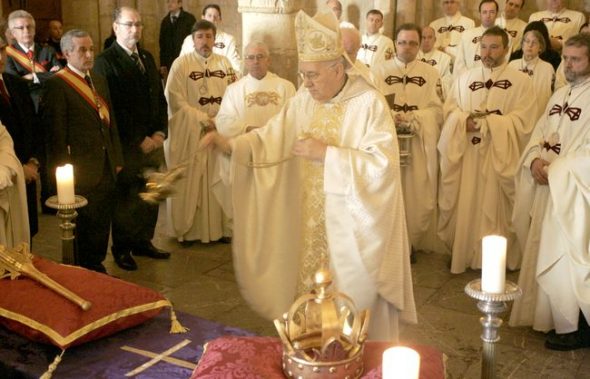Un centenar de personas participaron hoy en una misa y un responso en homenaje a los reyes leoneses. El acto, presidido por el obispo de León, Julián López, tuvo lugar en la basílica de la Real Colegiata de San Isidoro y estuvo precedido por una procesión ciriada y con cruz en alto que recorrió las naves del templo y en la que participaron los integrantes de la Imperial Orden del Pendón de San Isidoro.