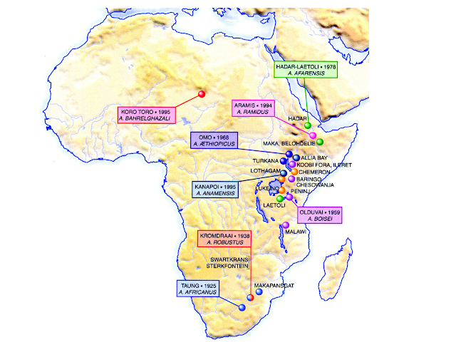 | Lugares de hallazgos de Ardipithecus, Australopithecus y Paranthropus. |