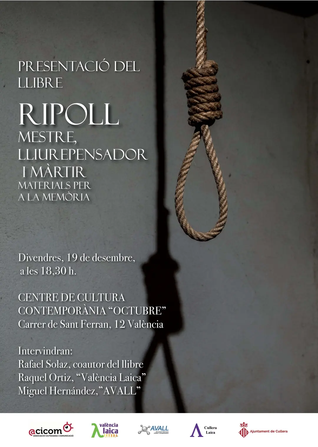 Divendres 19/12/2025 CCC OCTUBRE, 18.30h. RIPOLL MESTRE, LLIUREPENSADOR I MÀRTIR. MATERIALS PER A LA MEMÒRIA En 1826 un…