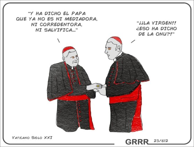 Hoy recogemos una viñeta de Gruñido Grrr, publicada en Kaos en la Red, que con ironía y sátira, critica el clericalismo de la Iglesia católica a nivel mundial, donde por momentos se confunde al Papado con la ONU, especialmente ante el debilitamiento del rol histórico de esta última.