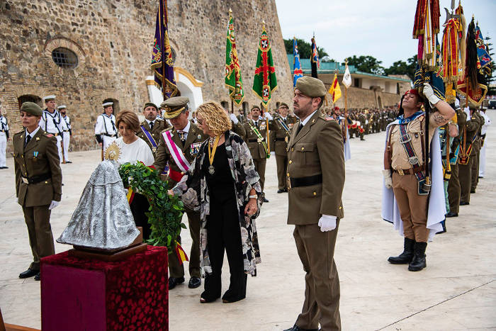 El Patio de Armas ha sido escenario una vez más en Ceuta de la fusión entre la Iglesia y el Ejército, entre la fe y las armas. Las Murallas Reales han acogido la parada militar en honor a la Virgen de África coincidiendo con el 600 Aniversario de la llegada de esta imagen religiosa a Ceuta. Imagen que es, según el discurso del comandante general, Javier Sancho Sifre, la clave de la «reconquista» de Ceuta en 1415, a manos de los portugueses, pues era esta «una guarnición militar formada por caballeros y tradiciones medievales que difícilmente habría entrado en liza de no tener un augusta señora por la que luchar».