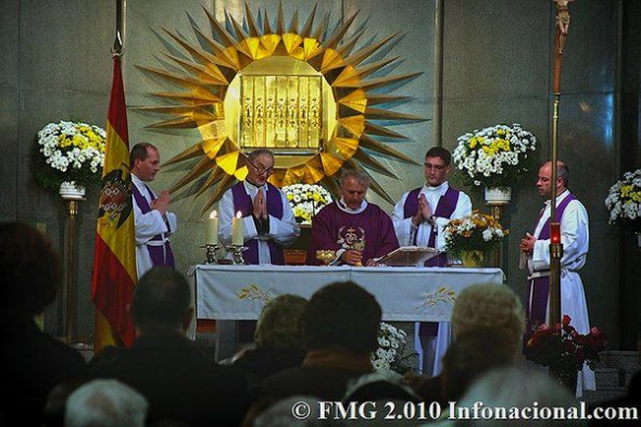 La misa fue presidida por el Padre Miguel y concelebrada por los padres Angulo, Noviski, Gabriel y César, según informa la página web de Acción Juvenil Española (AJE). Fue el padre Gabriel Calvo quien tras finalizar el acto, pronunció al lado de la bandera franquista unas sentidas palabras sobre la necesidad de pedir por las almas de los difuntos y agradecer al Generalísimo Franco y a José Antonio cuanto hicieron por España.