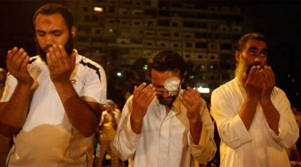 Seguidores de Mursi rezan en la acampada que mantienen en El Cairo. | Reuters