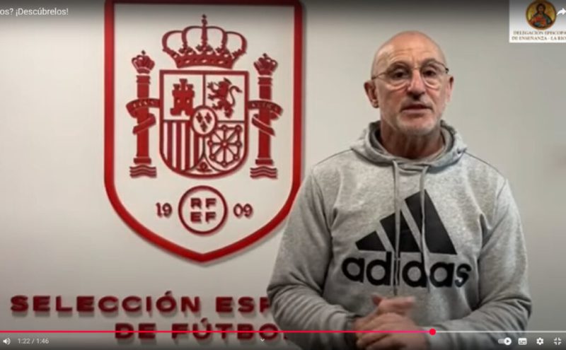 Emplear la simbología nacional para promover la asignatura de religión es un acto impropio en un país aconfesional. El seleccionador no está dirigiéndose a los estudiantes como un ciudadano privado, sino desde un espacio que representa a España oficialmente. Supongamos que el vídeo se hubiese hecho en su despacho y detrás estuvieran sus libros y algunas fotos personales junto al ordenador. Sería hilar muy fino menospreciarle su aparición, pero es que ha elegido salir junto a un escudo de la selección que ocupa toda la pantalla. Cualquier duda la ha despejado él deliberadamente porque, como se ha dicho, la intención sibilina es confundir a la selección, a Estado, a España, con el mensaje que se está entregando.
