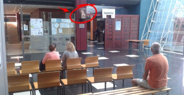 El ministro del Interior encuentra émulos de su pasión religiosa en la Policía: el jefe superior de Canarias coloca una figura religiosa donde los ciudadanos aguardan para renovarse el pasaporte.