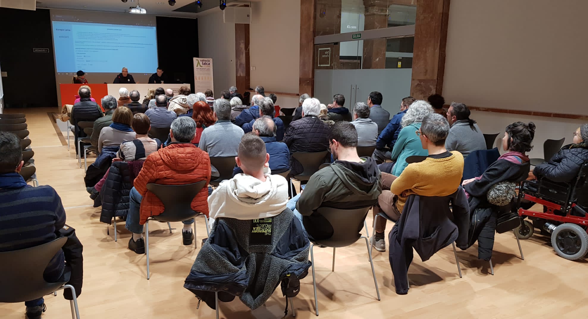 El salón de actos del Menador acogió a sesenta personas que recibieron información del funcionamiento de la organización y se interesaron por los diferentes temas tratados, como la presencia de la religión en la vida pública o las campañas desarrolladas por Europa Laica. Muchas de las personas asistentes mostraron su interés por formar parte de un colectivo que parece que tendrá una presencia importante en la sociedad de Castelló.
