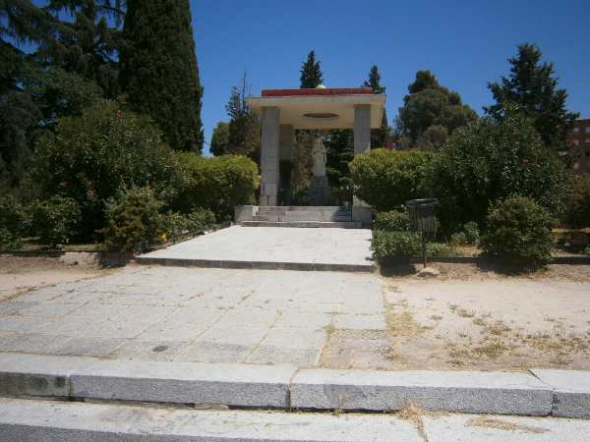 Tras las cruentas batallas desarrolladas en este lugar durante la guerra española, las minas y la metralla destruyeron el lugar y mutilaron la venerada imagen de la virgen inmaculada. El pueblo de Madrid la siguió rindiendo devoción y fervoroso culto. La Junta de la Ciudad Universitaria en el año santo mariano de 1959 ha querido honrar a la santísima virgen en su venerada y mutilada imagen dedicándole este monumento".